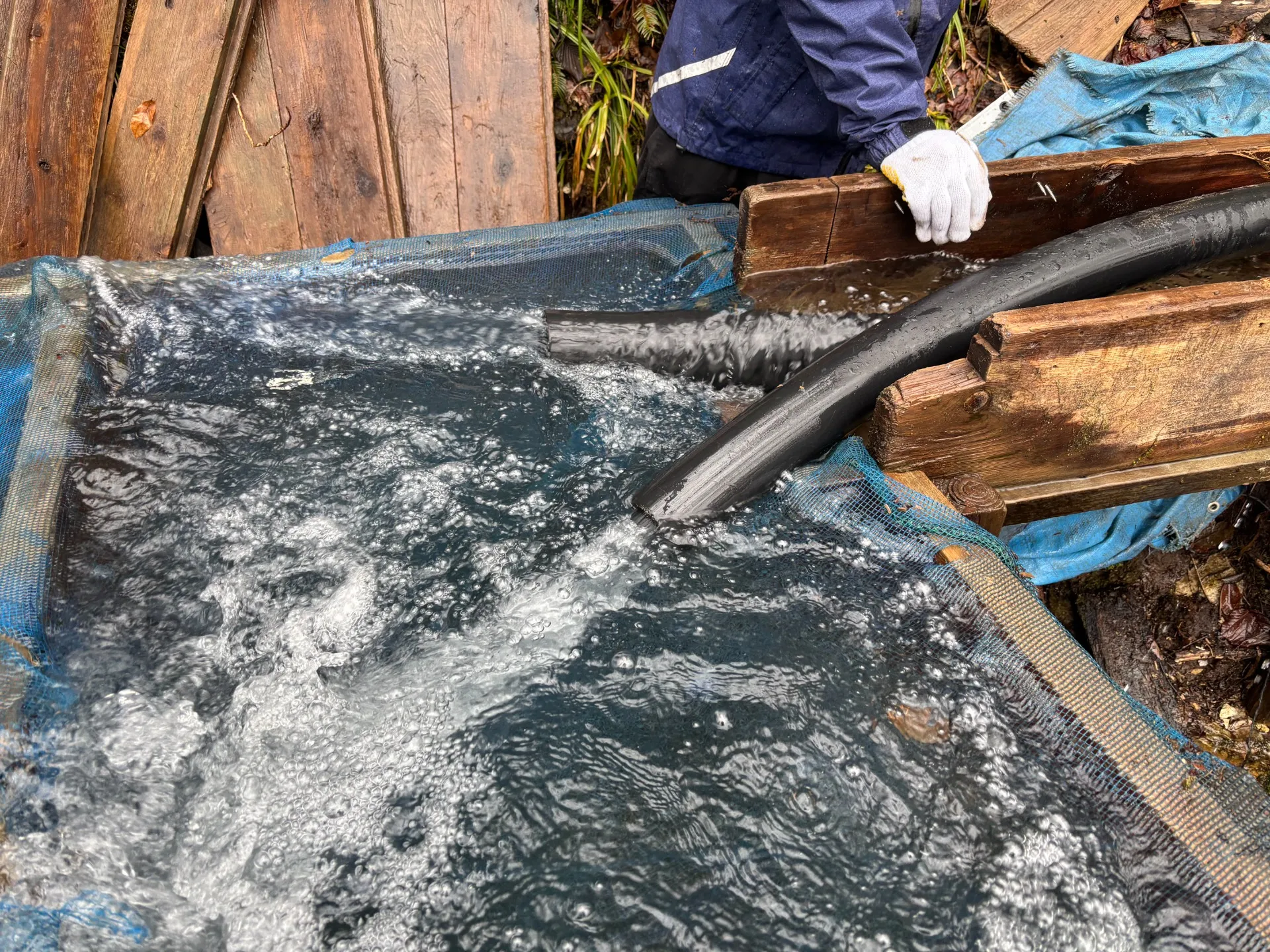 掃除が終わると、水がぐっと澄んでとてもきれいに。こうしたひと手間で、お客様に気持ちよく過ごしていただけるんだなと実感できる瞬間でもあります。